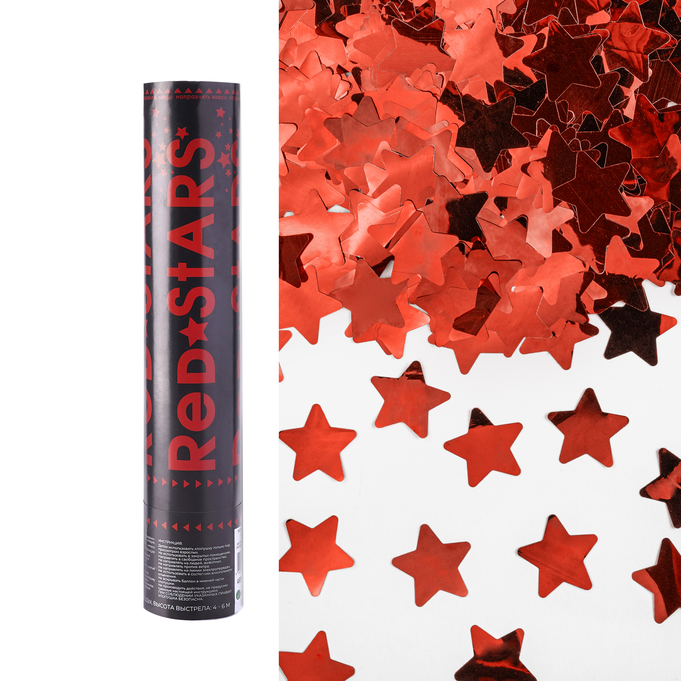 Пневмохлопушка (12/30 см), Звезды фольга, Красный, Металлик, 1 шт.