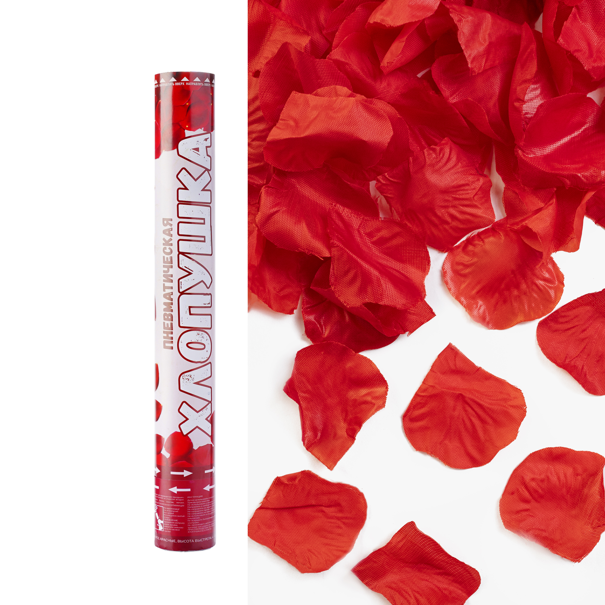 Пневмохлопушка с искусственными лепестками роз сделает любой праздник ярче, а фото- и видео-съемку еще более эффектной