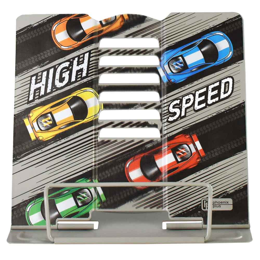 Подставка для книг и учебников арт.63085/ 24 ТРЕК (19х20х15.5 см, окрашенный чёрный металл, количество углов наклона: шесть, прижим для фиксации страниц: есть, УФ-печать, ПЭТ-пакет).