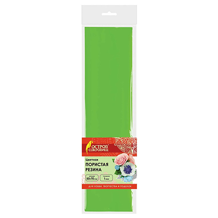 Цветная пористая резина (фоамиран) ОСТРОВ СОКРОВИЩ предназначена для хобби, творчества и рукоделия.Лист светло-зеленого фоамирана формата 50х70 см позволяет создать уникальную и эффектную поделку! Толщина листа - 1 мм, что придает ему дополнительную пластичность и податливость в работе. Материал очень прост в использовании: легко режется обычными ножницами, ему можно придать любую форму растягивая и скручивая.Используется для создания флористического декора, аппликаций, сувениров, детского рукоделия и создания украшений. Готовые изделия представляют собой: аксессуары для волос (банты, ободки, резинки, короны), бижутерию, банты для подарочных упаковок, елочные игрушки. Не токсична, безопасна для детского творчества.Данный вид фоамирана можно мыть.
