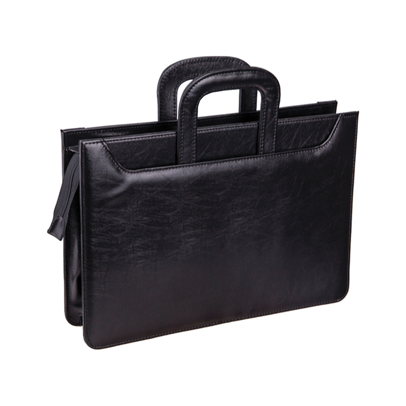 Мужской деловой портфель из искусственной кожи OfficeSpace Irena чёрного цвета. Размер: 380*260*100 мм. Портфель имеет выдвигающиеся ручки, два внутренних отделения для хранения бумаг формата А4, а также внешние карманы спереди и сзади. Папка-портфель застёгивается на молнию.
