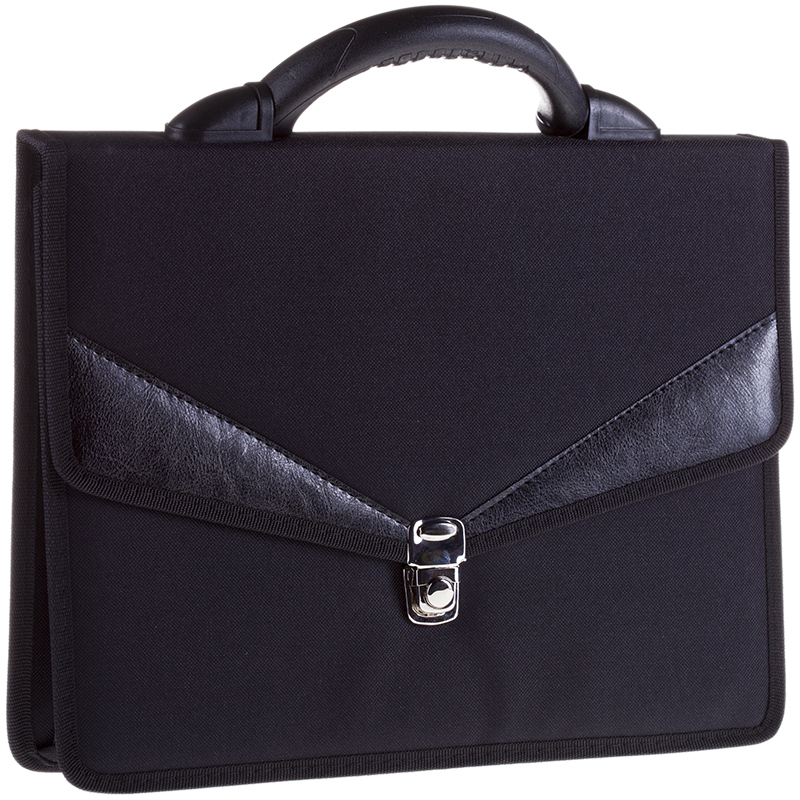 Деловой портфель из текстиля отличается легким весом и презентабельным дизайном. Пластиковая ручка. Закрывается на клапан с замком-защелкой. Портфель украшен вставками из кожзама. Внутри отделения для хранения документов формата А4. Заказ возможен поштучно. Размер 350х260х90мм
