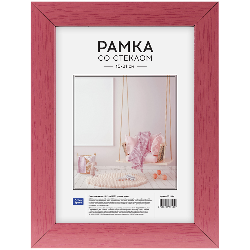 Рамка пластиковая 15*21см, OfficeSpace, №10/1, розовое дерево И