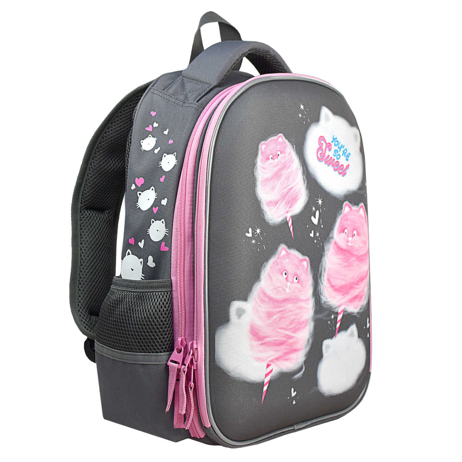Ранец школьный арт.59294/ 10 КОТОВАТЫ (29х39.5х14 см, полиэстер, ЭВА панель, сублимационная печать, шелкография в две краски, 2 отделение (-я), молния, тип спинки: формоустойчивая жёсткая спинка из сетчатой ткани и поролона, тип дна: с пластиковыми ножками, ПЭТ-пакет с ручкой)