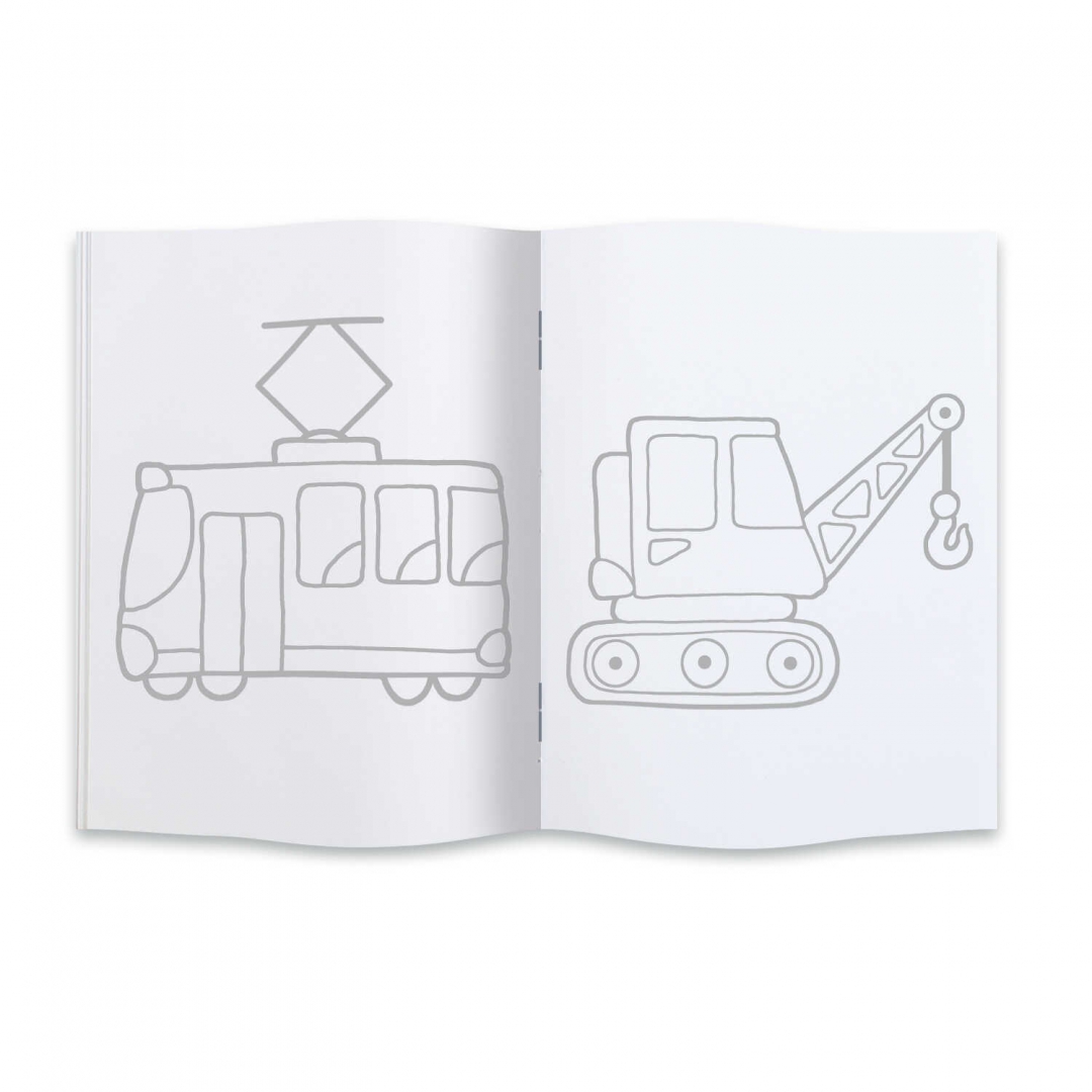 Раскраска "Мои первые раскраски" арт. 43039 ВЕСЕЛЫЙ ТРАНСПОРТ /212х275 мм, 4 л., блок - офсет 100 г/м2, печать в одну краску, обл - мелованная бумага 170 г/м², мягкий переплёт (2 скобы),