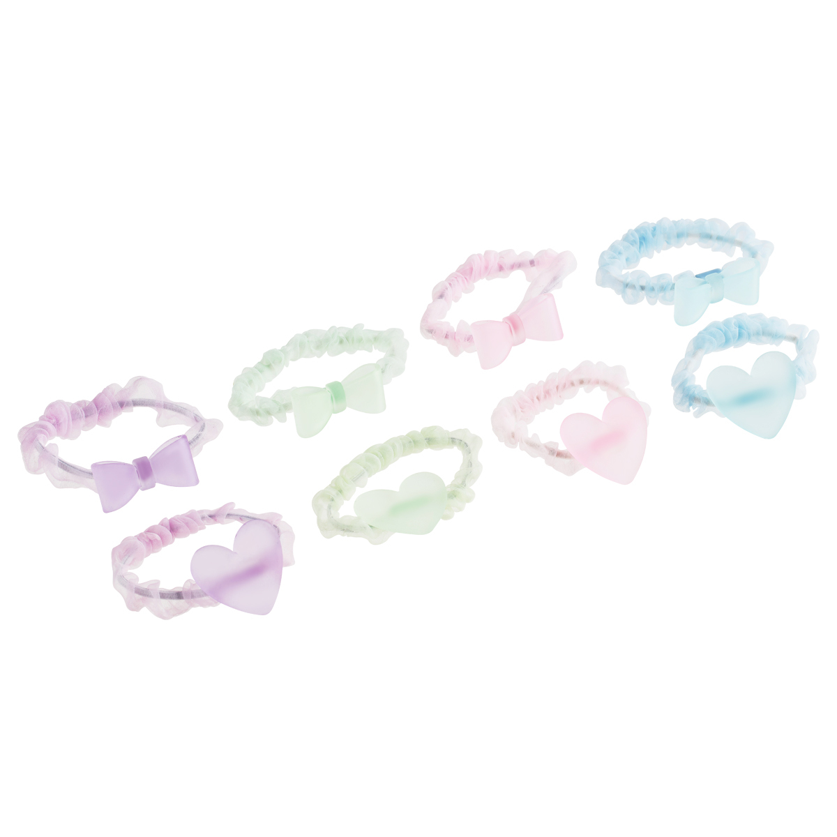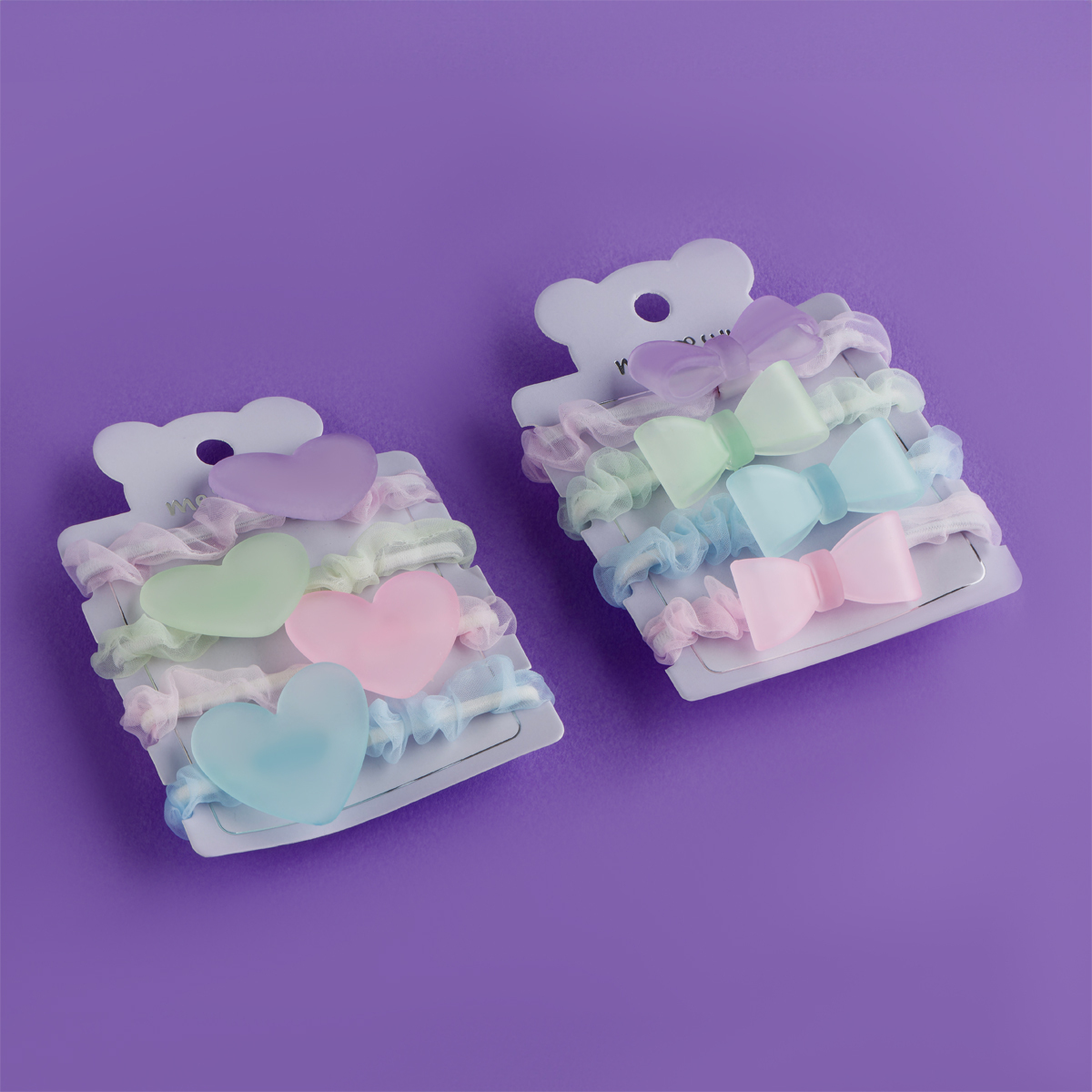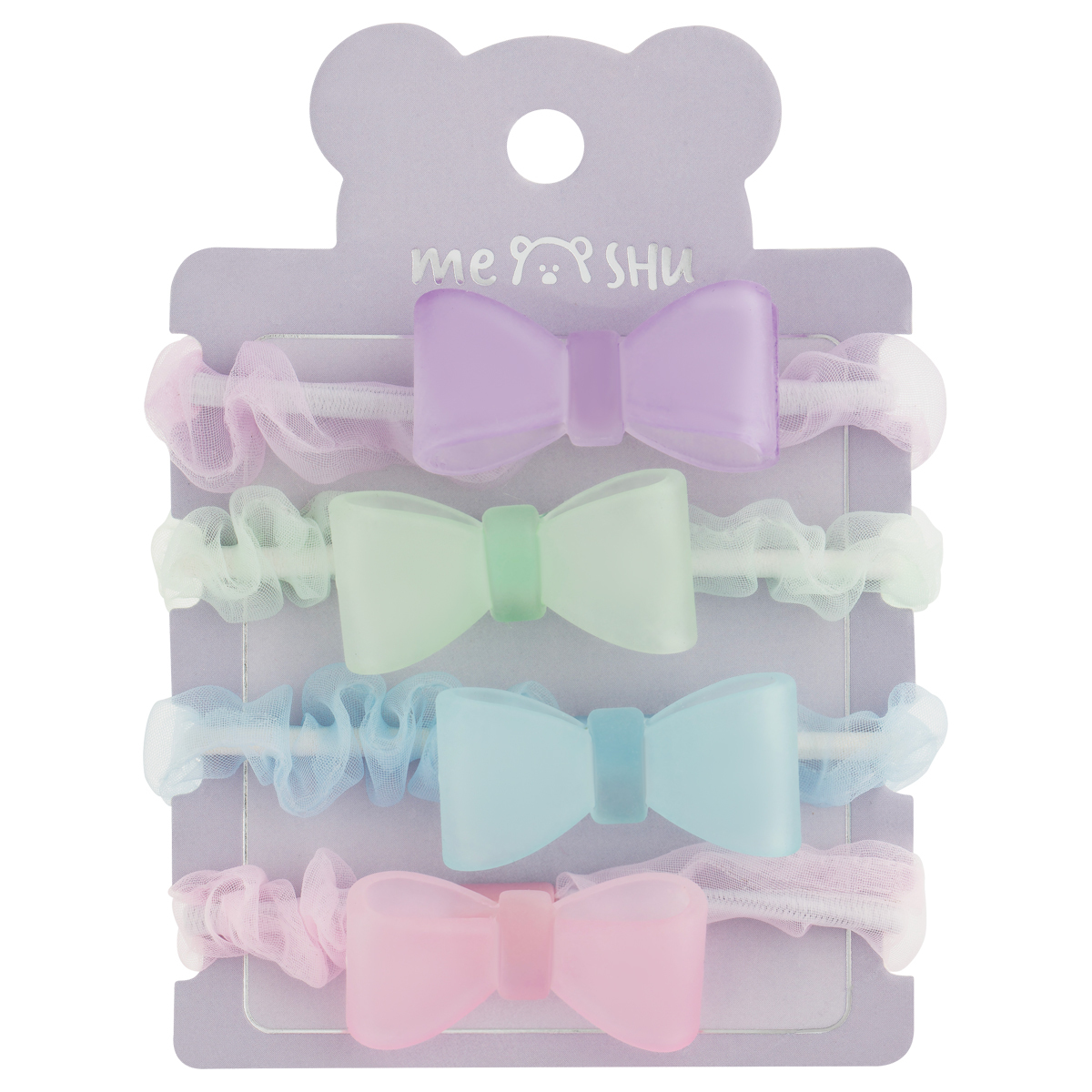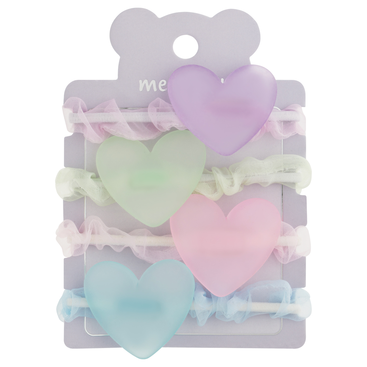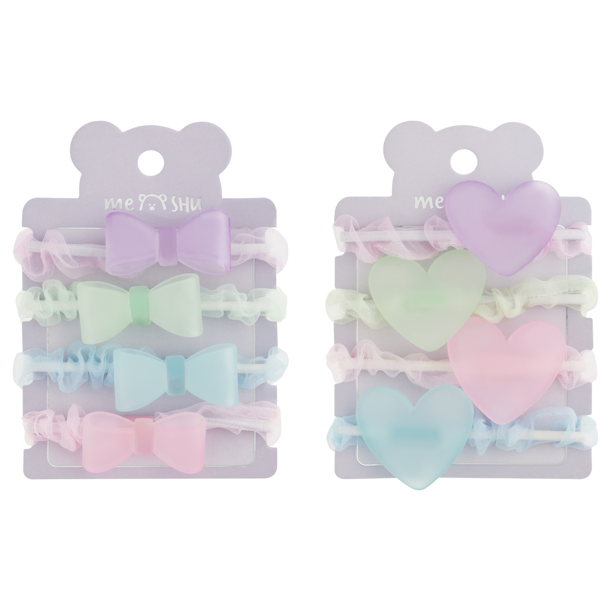 Резинки для волос от MESHU с полупрозрачными топперами — идеальный аксессуар для стильных и аккуратных причёсок. Резинки подойдут для создания повседневного образа или дополнят праздничный наряд. Изделие надёжно фиксирует волосы, не повреждает их. Аксессуар комфортно носить целый день. Прочная эластичная основа предотвращает сползание, а мягкая текстура бережно удерживает волосы. Аксессуар сохранит причёску при интенсивных физических нагрузках. Благодаря этому резинки подходят для занятий йогой, кардиотренировок и других активностей. Набор состоит из 4 штук. Интересный акцент коллекции — полупрозрачные топперы в форме сердечек и бантиков. Декоративные элементы придают внешнему виду лёгкости и изящности.
