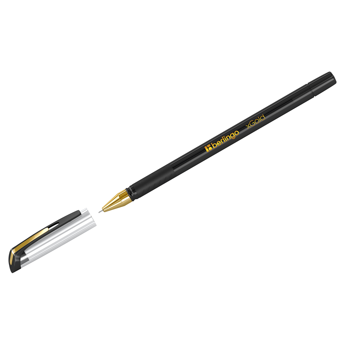 Шариковая ручка Berlingo xGold – эта флагманская модель ассортимента Berlingo. 12 штук в упаковке. Цвет чернил – чёрный. Толщина линии письма: 0,5 мм, длина линии письма: 850 метров. Не раз становилась официальной ручкой «Тотального диктанта» – ежегодной образовательной акции популяризации грамотности. Кроме того, xGold является обладателем премии «Выбор канцелярского рынка 2018». Ручка оснащена вентилируемым колпачком, который обеспечивает безопасность при использовании детьми. Удобный пластиковый клип позволяет закрепить ручку, например, на ежедневнике или тетради. Мягкий резиновый грип препятствует скольжению пальцев и обеспечивает комфортное письмо. Диаметр пишущего узла составляет 0,7 мм, благодаря чему ручка прекрасно подходит для любого стиля письма.
