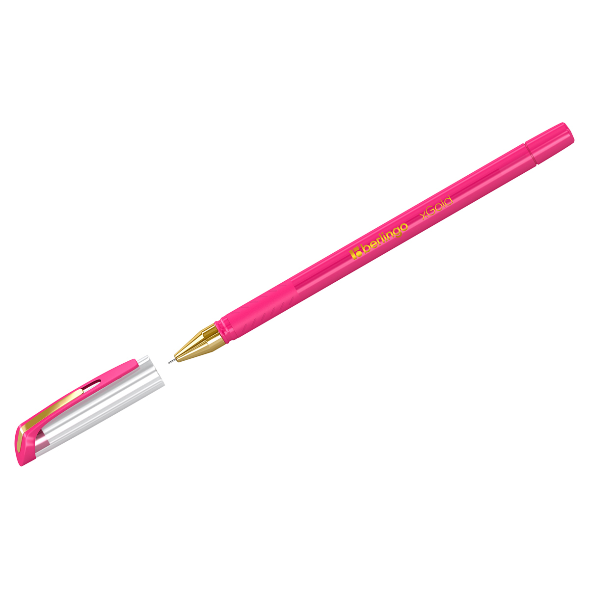 Шариковая ручка Berlingo xGold – это флагманская модель ассортимента Berlingo. 12 штук в упаковке. Цвет чернил: розовый. Толщина линии письма: 0,5 мм, длина линии письма: 850 метров. Не раз становилась официальной ручкой «Тотального диктанта» – ежегодной образовательной акции популяризации грамотности. Кроме того, xGold является обладателем премии «Выбор канцелярского рынка 2018».