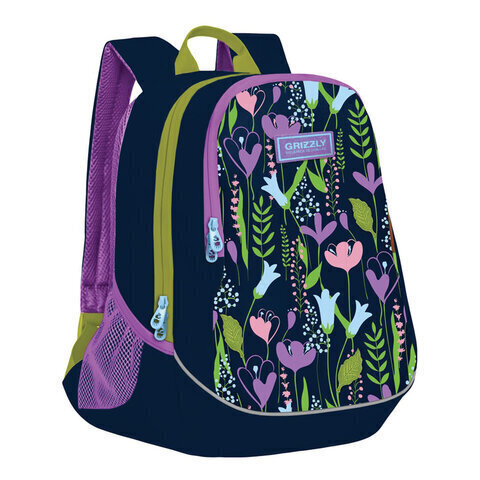Рюкзак, два отделения, боковые карманы из сетки, внутренний держатель для ключей - фастекс, внутренний карман для электронных устройств, внутренний составной пенал-органайзер, укрепленная спинка, карман быстрого доступа в верхней части рюкзака, ручка-петля из стропы, укрепленные лямки, держатель для школьной карты