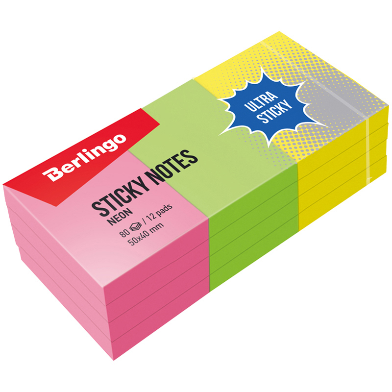 Набор блоков бумаги для записей с клеевым краем Berlingo Ultra Sticky отлично подойдёт для сохранения важной информации. Плотность бумаги для заметок составляет 70 г/м2. Размер листа в блоке для заметок – 50*40 мм. В упаковке 12 блоков по 80 листов. 3 насыщенных неоновых цвета: жёлтый, розовый и зелёный. Блок прямоугольной формы изготовлен с использованием качественного клеевого состава, который позволяет не оставлять следов на поверхности и многократно использовать лист. Повышенная клейкость – 25 Н/м. В блоке для записей используется специальное покрытие, предотвращающее закручивание, оптимизированное для комфортного письма. Набор блоков для записей упакован в прозрачную пленку с возможностью быстрого открытия.