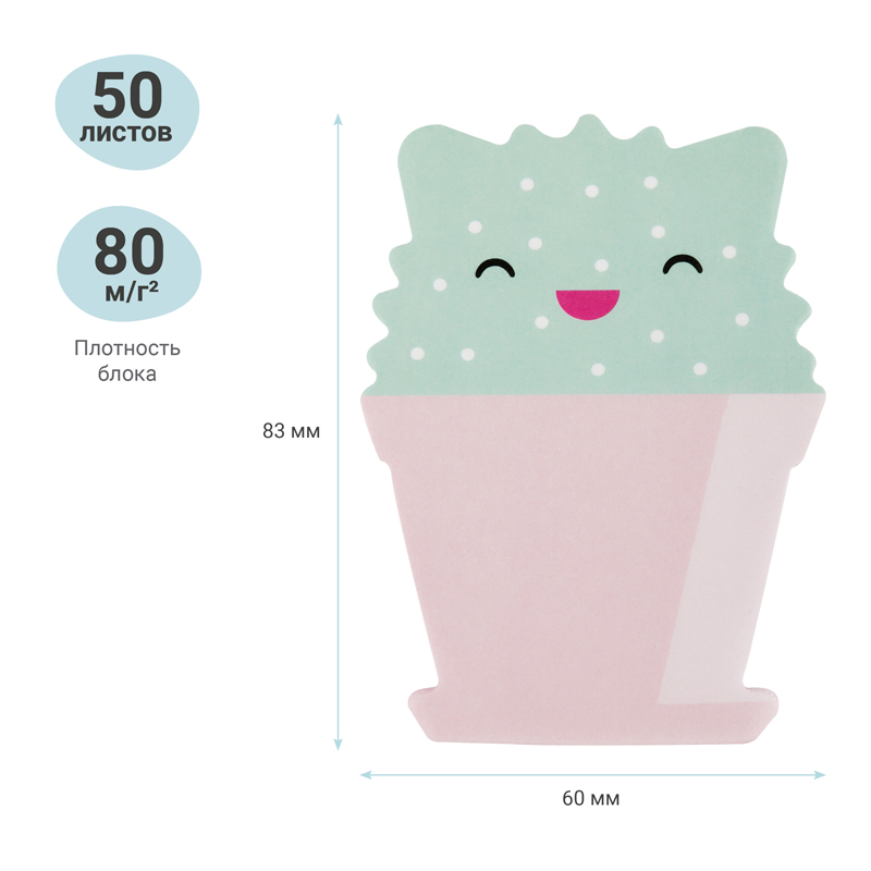 Самоклейщийся блок бумаги MESHU для оперативных записей, поможет сохранить важную информацию и интересные идеи. Плотность бумаги составляет 80 г/м2. В упаковке представлен блок в форме кактуса в цветочном горшке в индивидуальной упаковке с европодвесом.