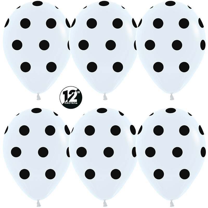Шар (12''/30 см) Черные точки, Белый (005), пастель