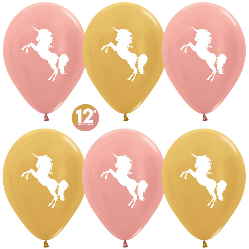 Шар (12''/30 см) Единорог, Розовое золото (568)/Золото (570), металлик