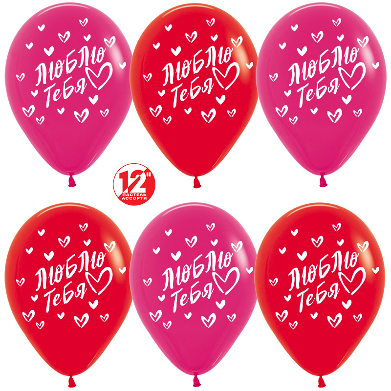 Шар (12''/30 см) Люблю тебя!, Красный (015)/Фуше (012), пастель