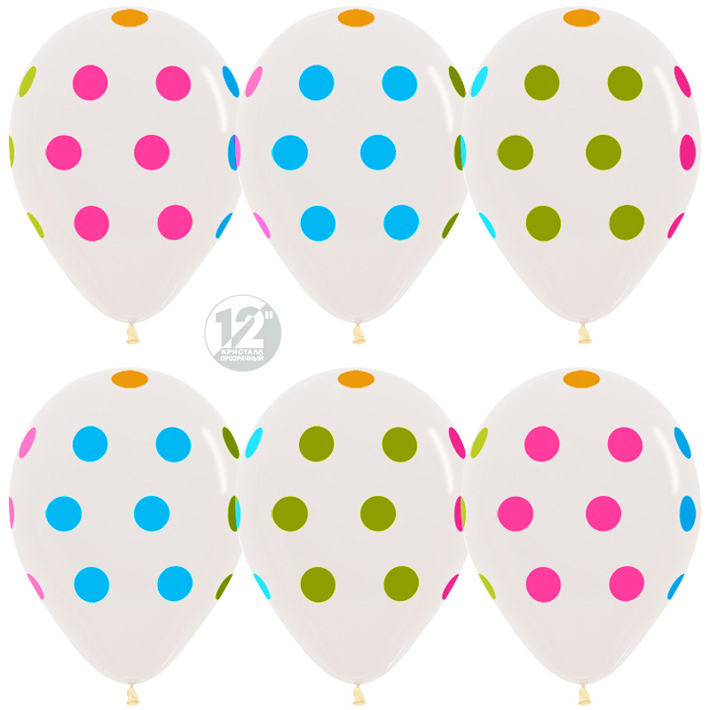 Шар (12''/30 см) Разноцветные точки, Прозрачный (390), кристалл