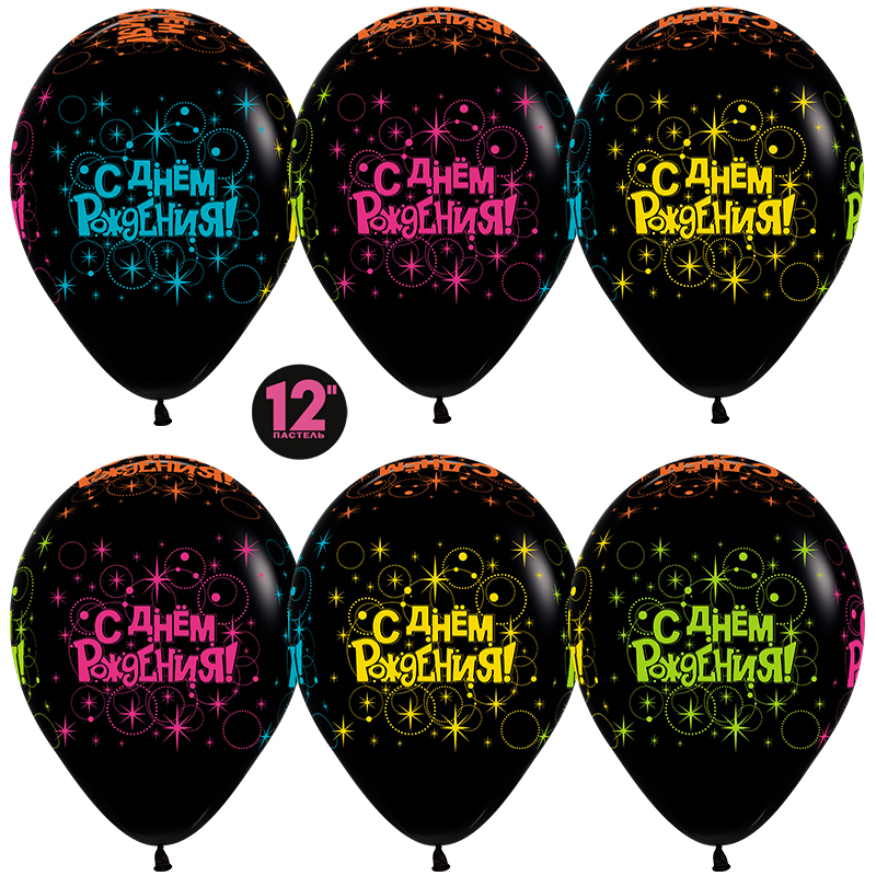 Шар (12''/30 см) С Днем Рождения!, Черный (080), неон