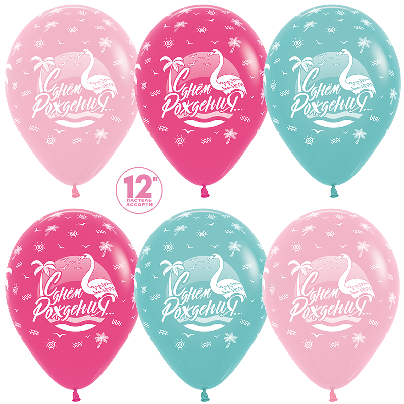 Шар (12''/30 см) С Днем Рождения! (фламинго), Ассорти