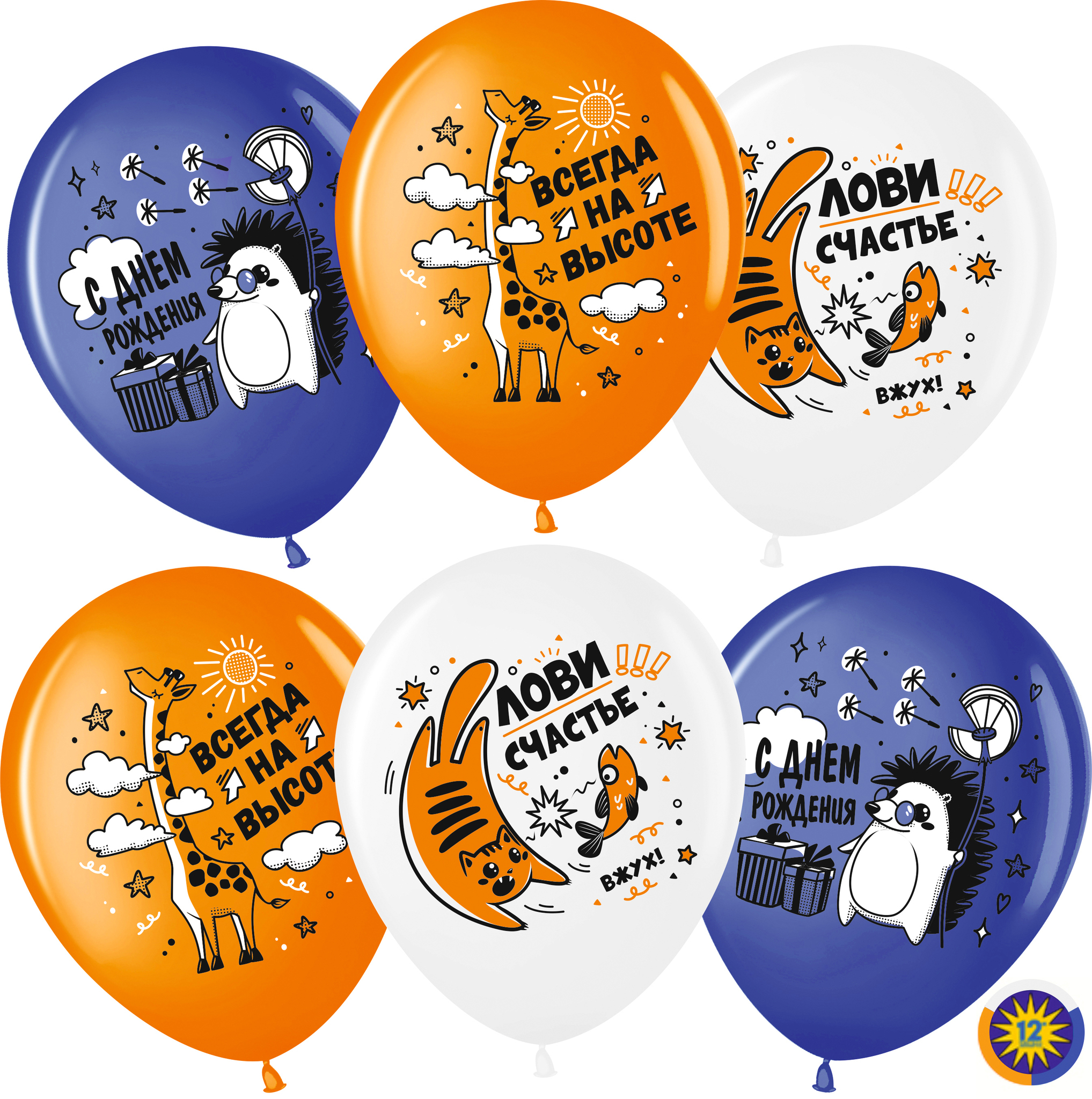 Шар (12''/30 см) С Днем Рождения, Лови Счастье!, Ассорти, пастель