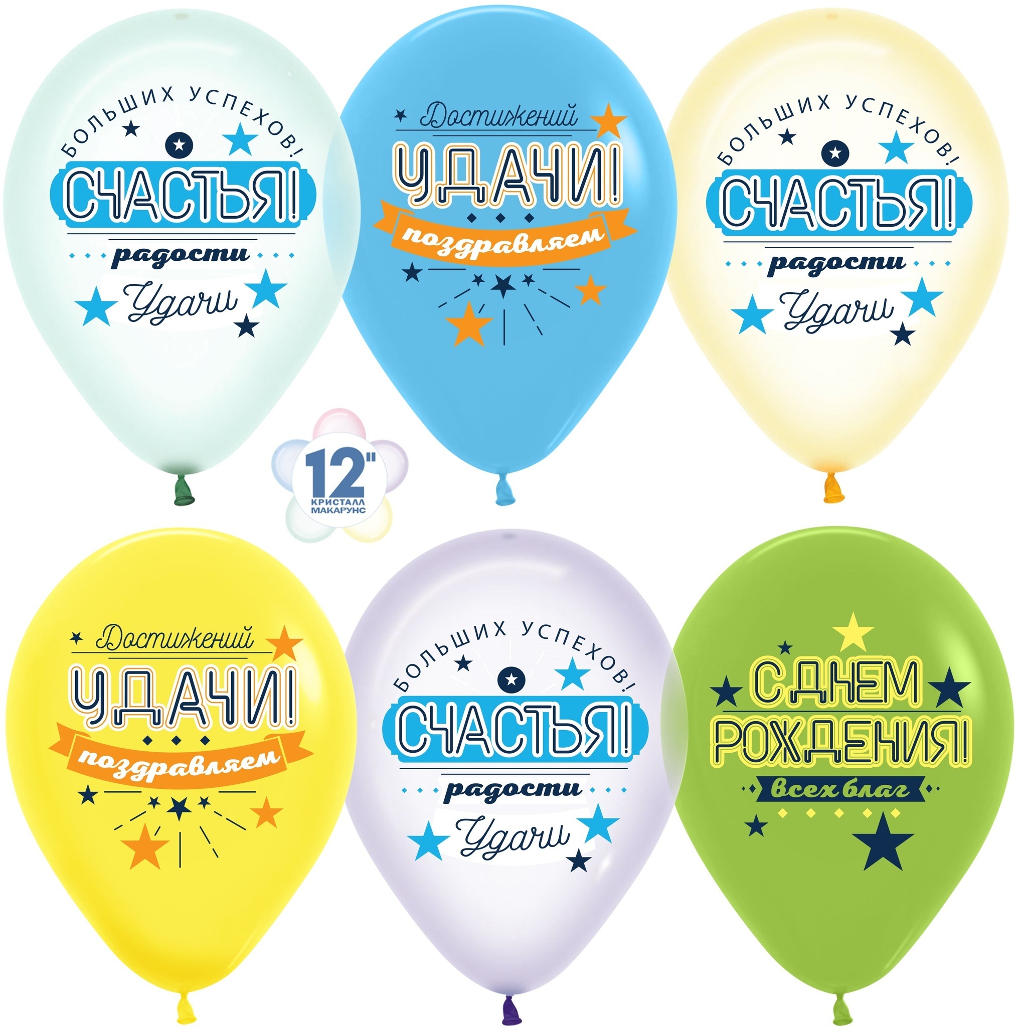 Шар (12''/30 см) С Днем Рождения, Счастья, Удачи!, Ассорти, кристалл