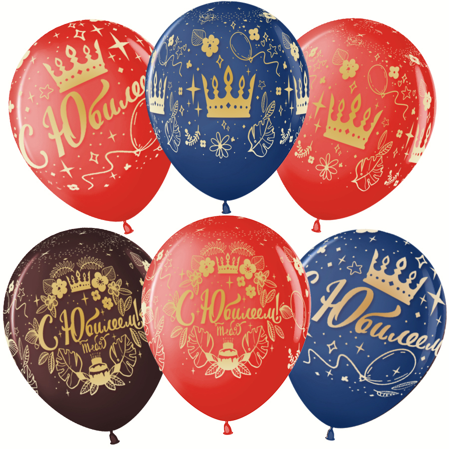 Шар (12''/30 см) С Юбилеем! (короны), Ассорти, пастель