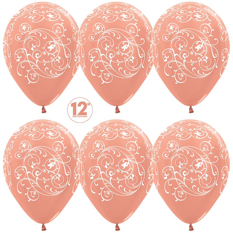 Шар (12''/30 см) Узор, Розовое золото (568), металлик