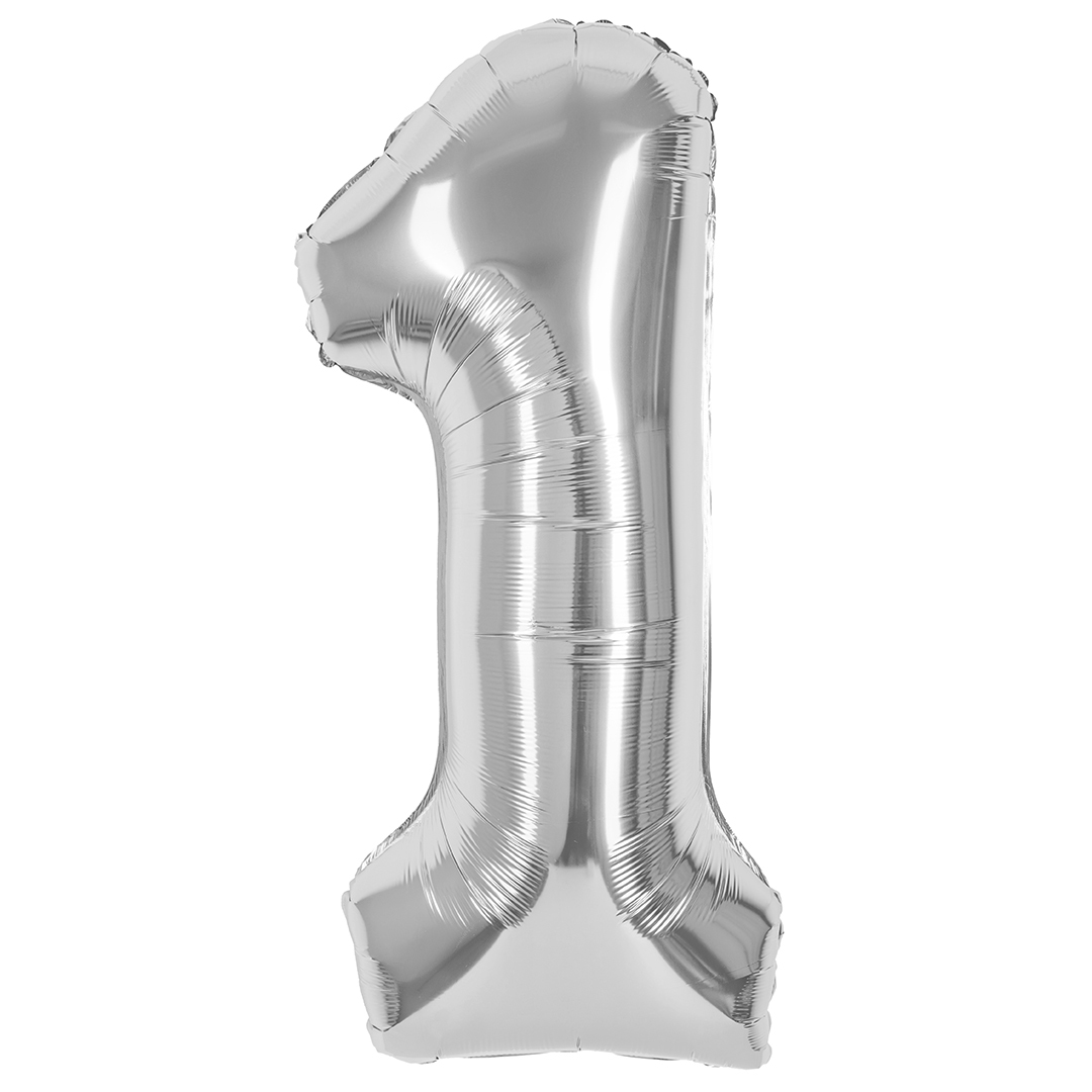 Шар (40''/102 см) Цифра, 1, Серебро, 1 шт.
