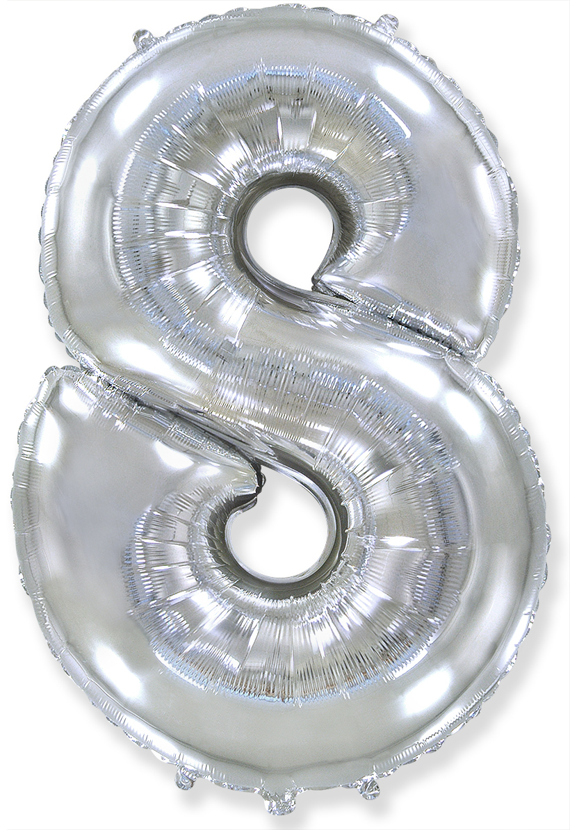 Шар (40''/102 см) Цифра, 8, Серебро, 1 шт. в упак.