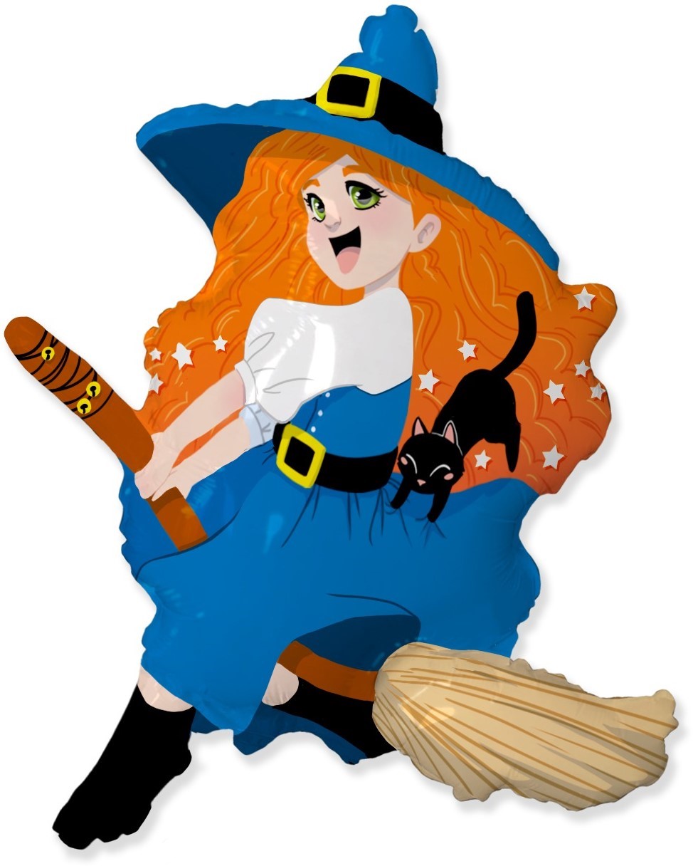 Шар (41''/104 см) Фигура, Ведьмочка на метле, 1 шт.