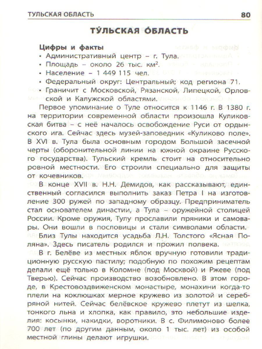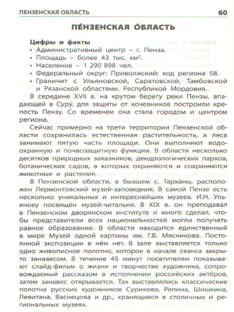 Книга знакомит с федеративным устройством России. Россия состоит из 85 частей – субъектов, или регионов, о каждом из которых вы найдёте информацию в этом словарике. Статьи расположены в алфавитном порядке по названиям регионов. В каждой статье рассказывается об истории образования того или иного региона, достопримечательностях, климате, природных богатствах, экономических особенностях. Символы каждого региона – флаг и герб – вы увидите на цветной вкладке. Книга поможет ребятам повторить, закрепить пройденное на уроках, с пользой провести свой досуг, а учителям – легко подобрать материал как для конкретного урока, так и для факультативного занятия.