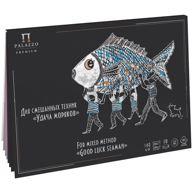 Планшет замечательно подходит для смешанных техник. Планшет состоит из 10 листов 2-х цветов: цвет "Lavanda" (тёмно-розовый) и цвет "Ground" (чёрный). Бумага имеет плотность 160г/м2, состоит из 40% хлопкового волокна с тиснением «Холст» с одной стороны. Внутренний блок для удобства проклеен с одной стороны по корешку и имеет жесткую подложку из переплетного картона.
