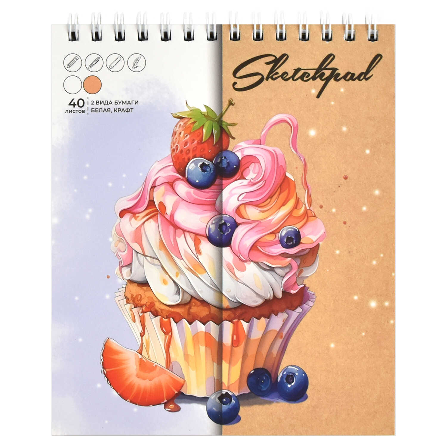Скетчпад 40 л, гребень по короткой стороне, белый офсет, крафт-бумага, жёсткая подложка из переплётного картона