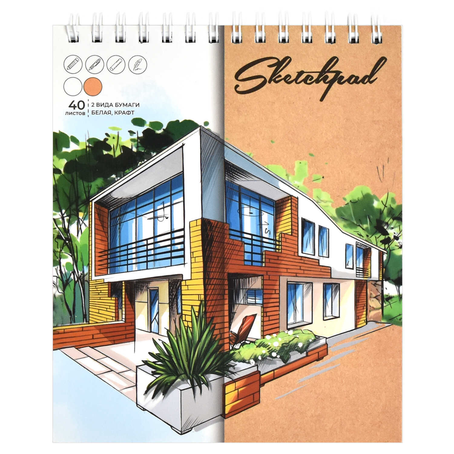 Скетчпад 40 л, гребень по короткой стороне, белый офсет, крафт-бумага, жёсткая подложка из переплётного картона