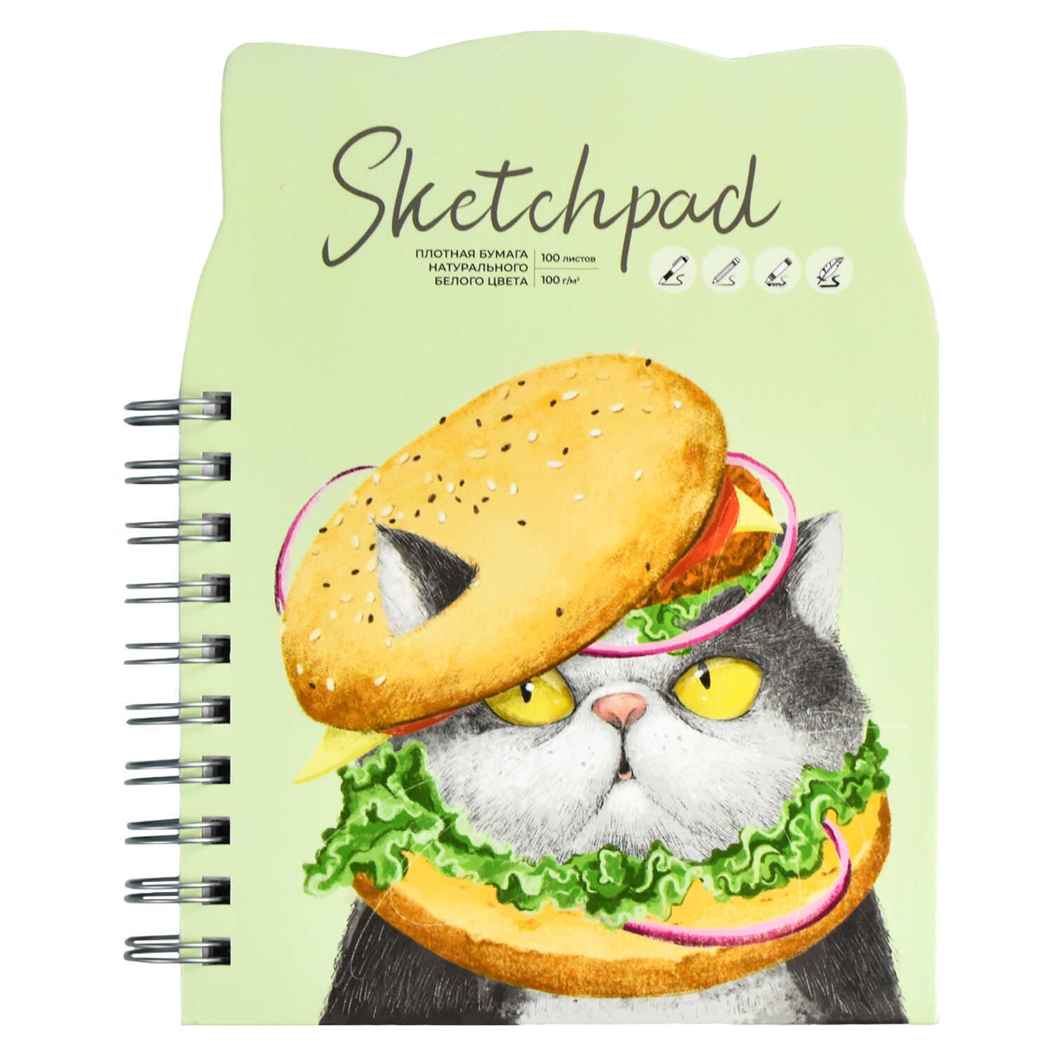 Скетчпад 100 л, двусторонняя кашировка на гребне, картон переплётный 1,75 мм, белый офсет, фигурная вырубка