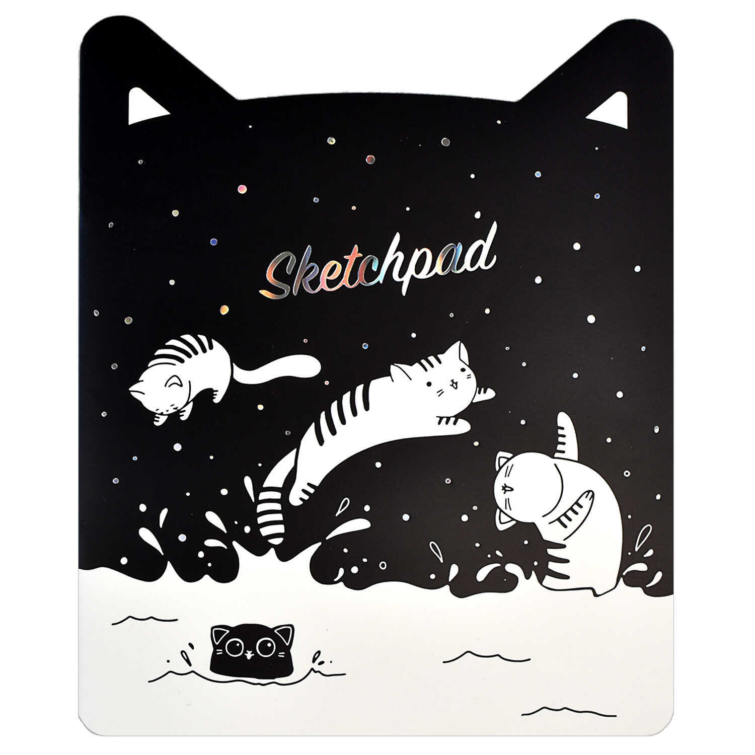 Альбом для эскизов. арт. 61688 МОРСКИЕ КОТИКИ /210х260 мм,24л., мягкий переплёт (2 скобы) фигурная вырубка. Обложка - мелованный картон 190 г/м², тиснение цветной фольгой, вн.блок - белый офсет 100 г/м²