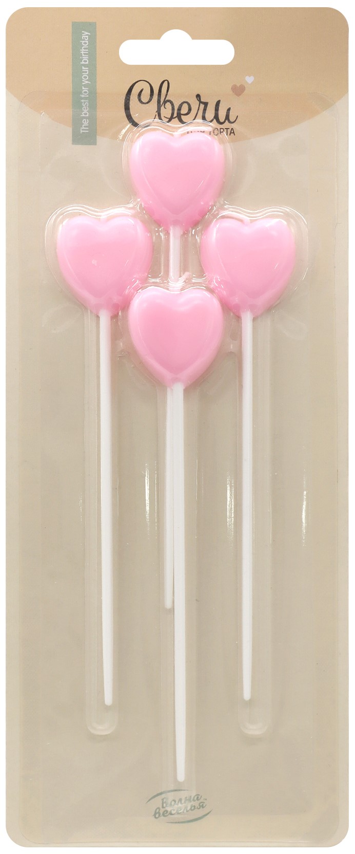 Свечи Сердце, на шпажке, Розовый, 2,5*3 см, 4 шт. с держат.