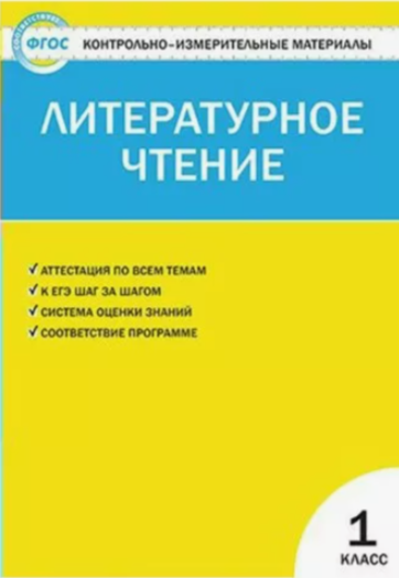 В пособии представлены контрольно-измерительные материалы по литературному чтению для 1 класса к учебнику Л.Ф.Климановой, В.Г.Горецкого, М.В.Головановой и др. ("Школа России"): тестовые, проверочные работы, итоговая контрольная работа, тексты для диагностики навыков чтения. Все задания составлены в соответствии с требованиями ФГОС, программой по литературному чтению для начальной школы. Адресовано учителям начальных классов, школьникам и их родителям.