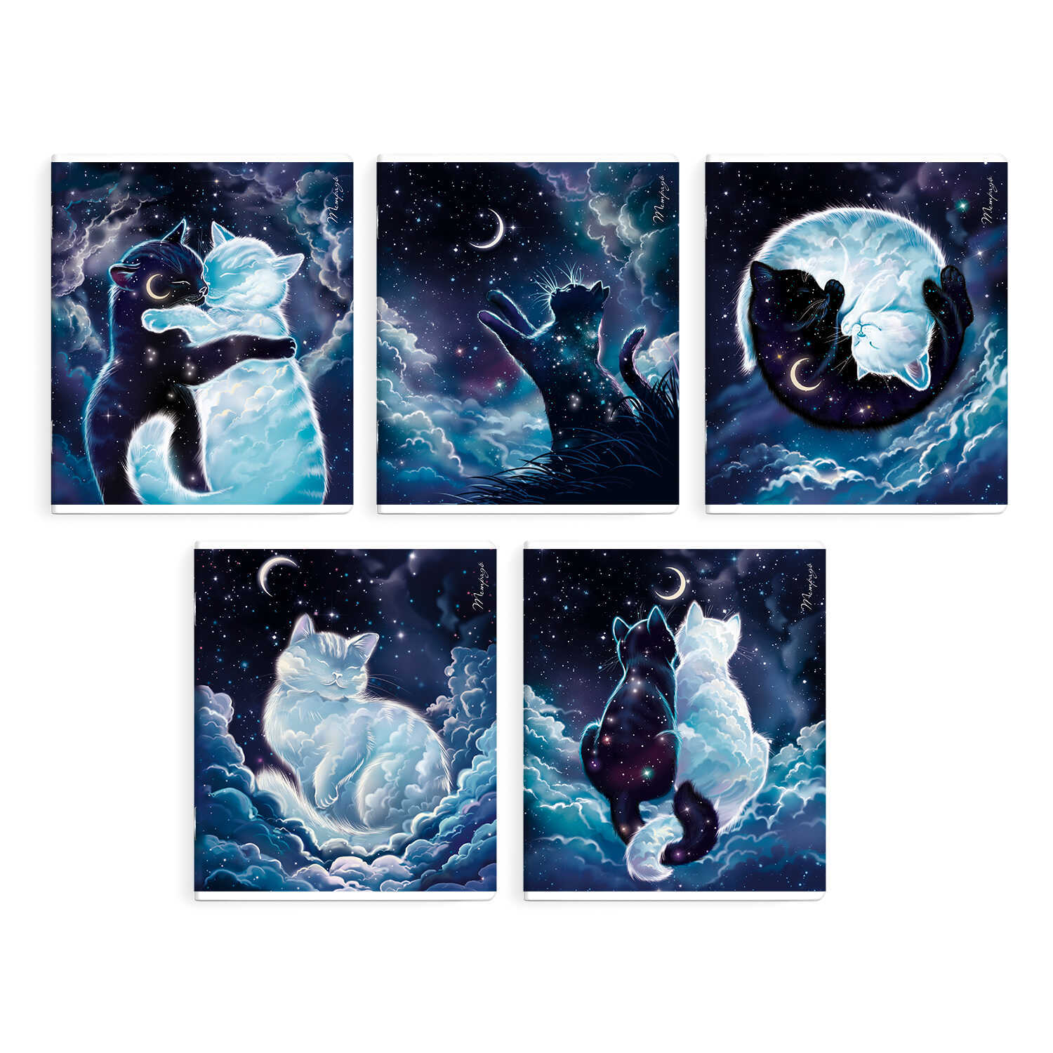 Тетрадь, 96 л, клетка, арт. 68578/ 5 НОЧНЫЕ КОТЫ /А5+, мягкий переплёт (2 скобы), обложка - выборочный ТВИН лак, мелованный картон 190 г/м², упаковка ассорти/