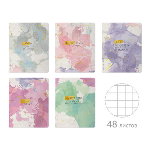 Тетрадь формата А5 (165х203 мм) в клетку состоит из 48 листов на скобе. Бумага плотностью 70 г/м2 отличается высоким качеством.