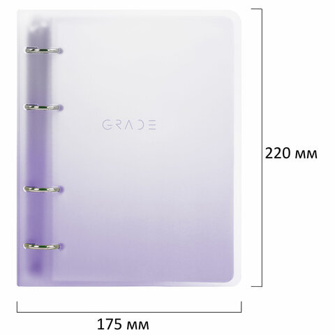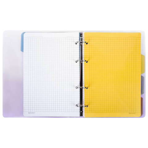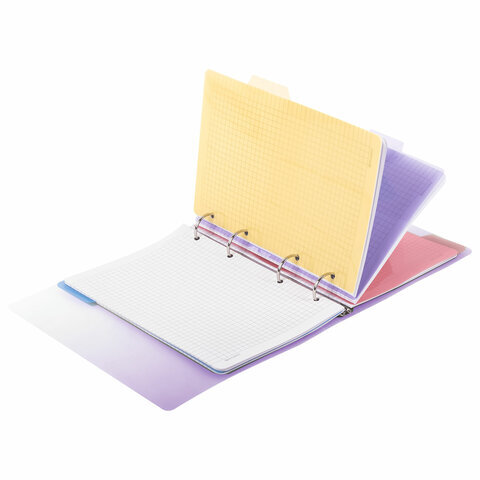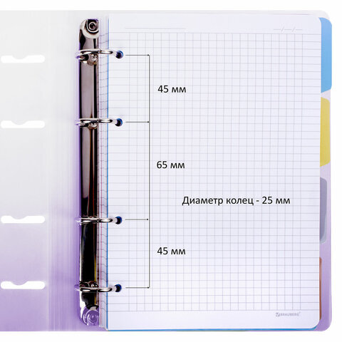 Блок состоит из 120 листов офсетной бумаги кремового цвета плотностью 70 г/м2. Линовка - клетка с полями. Мягкая интегральная обложка с прошивкой по периметру и вырубкой под кольца выполнена из износоустойчивого материала с текстурой под гладкую кожу синего цвета. Формат А5 является стандартным и обеспечивает комфортное ношение в рюкзаке/ранце или папке. Оборудована кольцевым механизмом с 4-мя кольцами для подшивки сменных блоков, что позволит носить на учебу/работу всего одну тетрадь с возможностью добавлять и менять листы. Полезный диаметр колец - 25 мм.