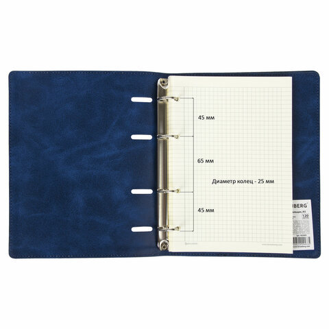 Тетрадь состоит из 120 листов офсетной бумаги плотностью 70 г/м2 с линовкой в клетку. Формат А5 является стандартным и обеспечивает комфортное ношение в рюкзаке/ранце или сумке. Кольцевой механизм позволяет легко сменить внутренний блок на новый, не покупая при этом новую тетрадь. Диаметр колец составляет 25 мм. Одна такая тетрадь способна заменить несколько небольших тетрадей для разного рода информации. Для удобства ведения записей тетрадь снабжена разделителями.