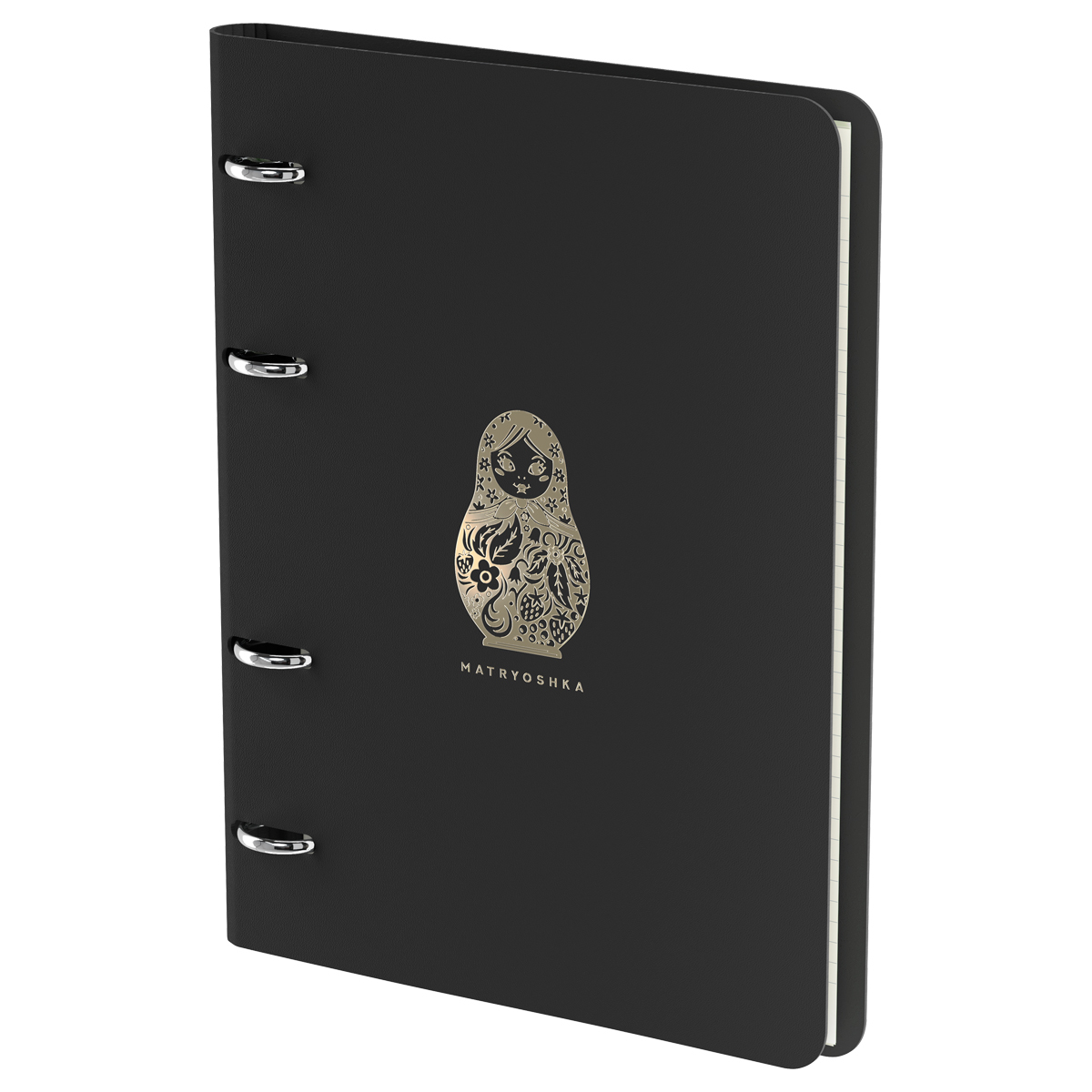 Тетрадь общая на кольцах Greenwich Line «Matryoshka» формата А5 (170*215 мм) – надежный помощник на учёбе и работе. В ней удобно хранить большой объем записей. Внутренний блок – 80 листов тонированной бумаги плотностью 80 г/м², белизна – 100%, линовка – клетка. Обложка выполнена из высококачественной экокожи и имеет стильный дизайн. Тип крепления – кольцевой механизм, состоящий из 4 колец. При необходимости можно менять или добавлять листы. Тетрадь упакована в пакет.