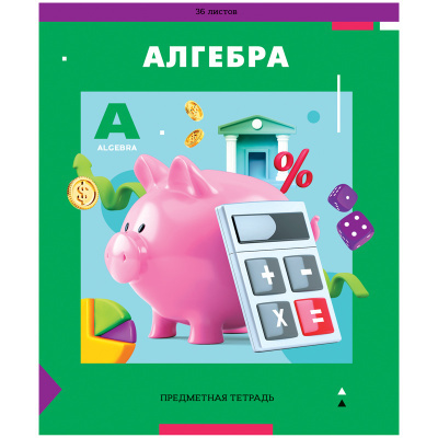 Тетрадь предметная ArtSpace «Алгебра» из серии «Пять в квадрате» (в серии 12 предметов) со справочным материалом на обложке. Формат тетради – А5 (165*205 мм), вид крепления – скрепка. Внутренний блок состоит из 36 листов офсетной бумаги плотностью 60 г/м2 и белизной блока 92%. Тип линовки – клетка с полями. Обложка тетради выполнена из выполнена из мелованной бумаги с отделкой ВД-лаком. Необычный дизайн обложки обязательно понравится школьникам.• Кол-во листов: 36;• Линовка (+поля): клетка с полями;• Формат (и размер): А5 (165*205 мм);• Белизна: 92%;• Плотность блока: 60 г/м2;• Крепление: скрепка