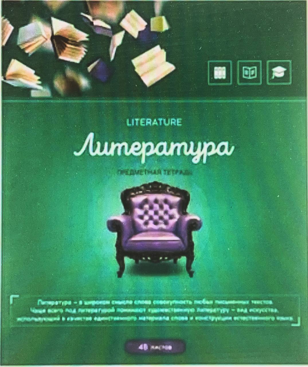 Тетрадь тематическая «Литература» из серии «Полет мысли» (в серии 12 предметов), со справочным материалом на обложке. Формат А5 (165*205 мм). Вид крепления – скрепка. Внутренний блок – 48 листов, офсет 60 г/м?, линовка – линия с полями. Обложка – целлюлозный картон, отделка обложки – ВД-лак