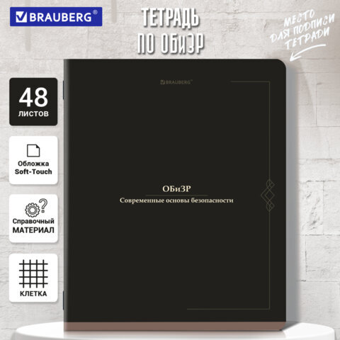 Тетрадь по ОБиЗР формата А5 (165х205 мм) содержит 48 листов, изготовленных из высококачественной офсетной бумаги плотностью 60 г/м2 и белизной 100%. Листы скреплены скобами. Блок линован в клетку, с красными полями. Обложка выполнена из мелованного картона плотностью 190 г/м2. Ламинация SoftTouch обеспечивает обложке мягкий, бархатистый тактильный эффект. Углы тетради скруглены. Справочный материал для учащихся содержит ключевые сведения по школьному предмету.