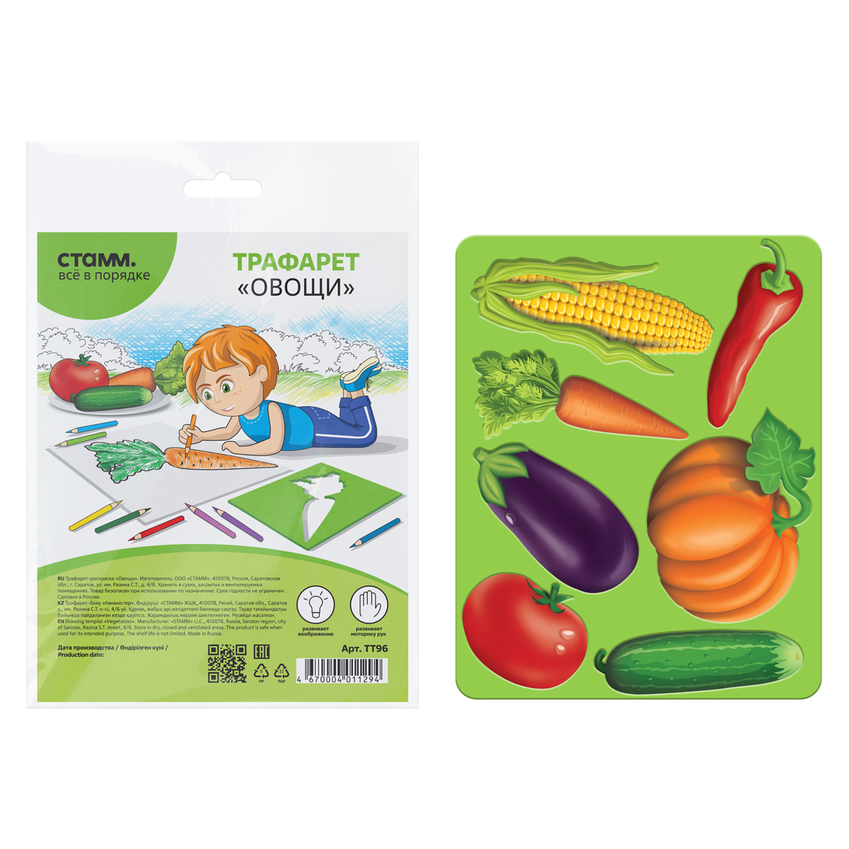 Трафарет-раскраска СТАММ «Овощи» предназначен для обучения ребёнка рисованию, развития мелкой моторики. Размер — 160*280 мм. Изделие помогает научиться обводить контуры предметов, дорисовывать и раскрашивать картинки. Работа с трафаретом позволяет подготовить кисть ребёнка к письму и отработать умение создавать чёткие линии. Тематика трафарета позволяет изучать окружающий мир в игровой форме и развивать воображение. Изделие выполнено из качественного полипропилена, имеет закруглённые безопасные углы. Цвет — зелёный. Трафарет легко отмывается и подходит для многократного использования. Упаковка — пакет с европодвесом, дополненный ярким информационным вкладышем.