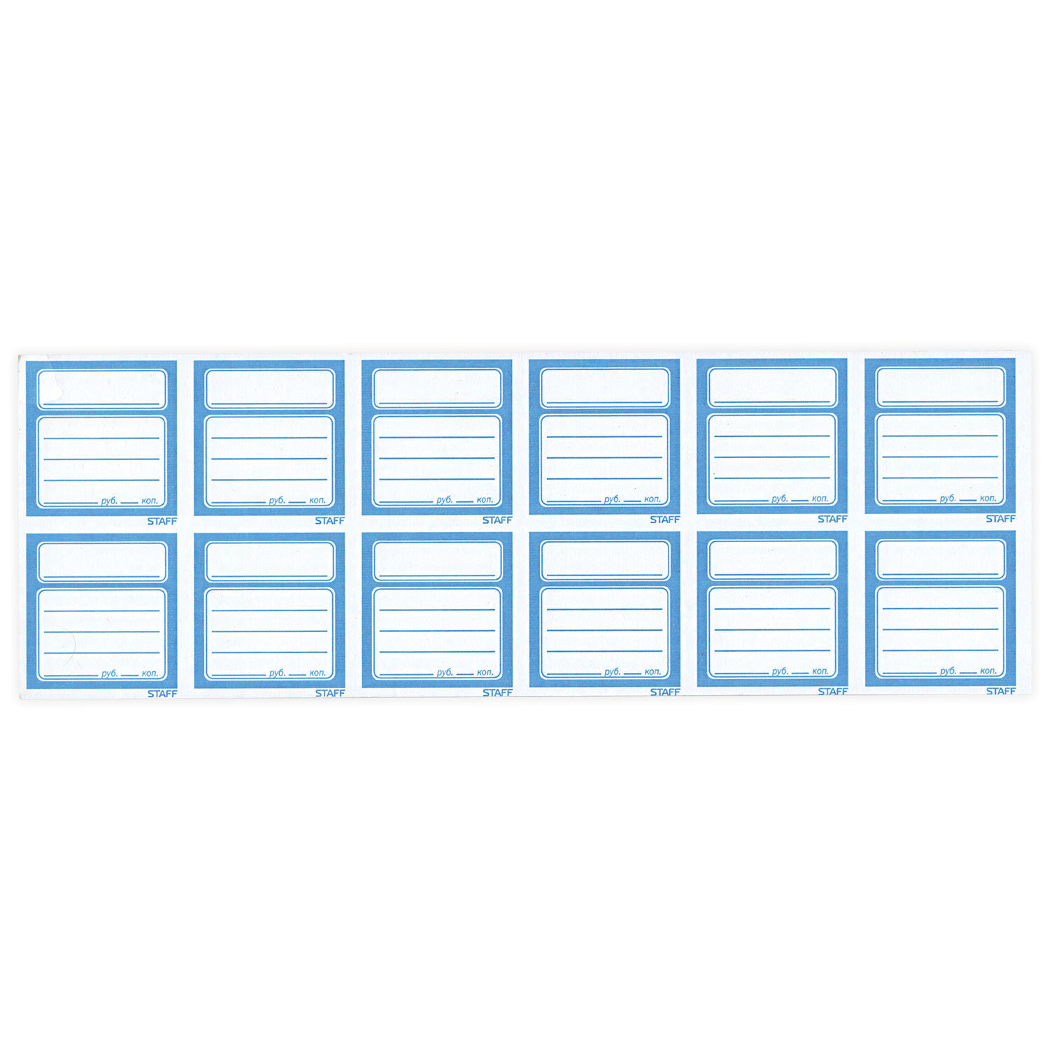 Ценники STAFF содержат поля для нанесения информации о компании, наименовании и цене.