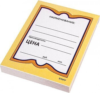 Выполнены из картона плотностью 200 г/м2. Информация на этикетку наносится вручную. Ширина этикетки составляет 90 мм, высота - 120 мм. Комплект из 50 штук является выгодным приобретением для большого количества товаров.