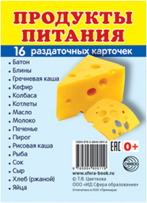 Дем. картинки СУПЕР Продукты питания. 16 раздаточных карточек с текстом (учебно-методическое пособие с комплектом демонстрационного материала 63х87 мм). 16 раздаточных карточек размером 63х87 мм для познавательного и речевого развития.На обороте каждой карточки - название продуктов питания на русском и английском языках.