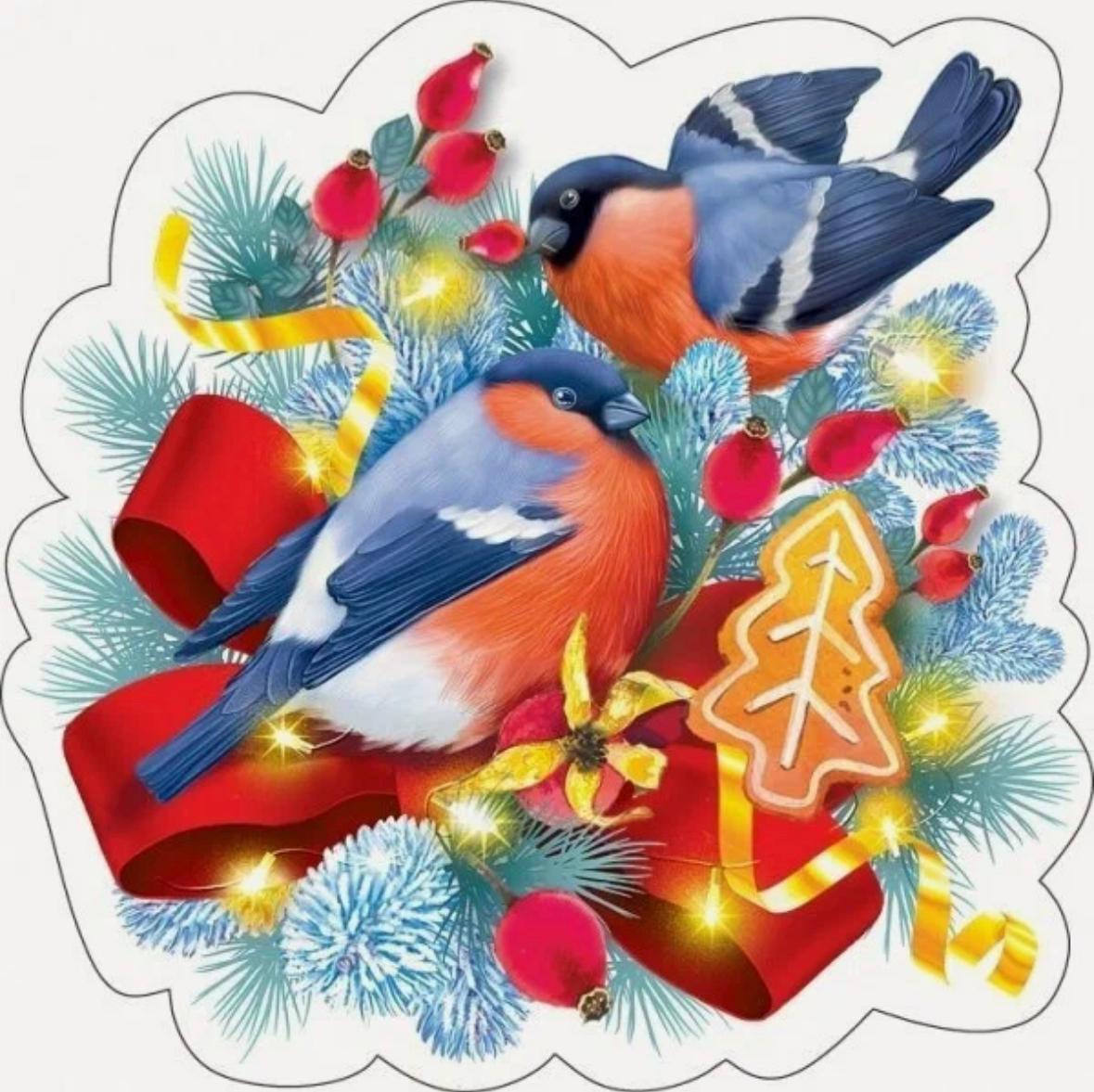 Украшение на скотче"Снегири на ветке"