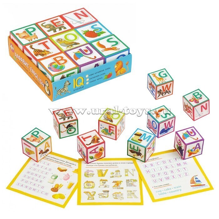 Комплект из 9 кубиков с буквами разработан специально для детей от 4 лет. Ребёнок будет учить буквы, английского алфавита, складывать их в слоги и слова. Во время игры происходит изучение алфавита, развитие навыка чтения, тренировка мелкой моторики.